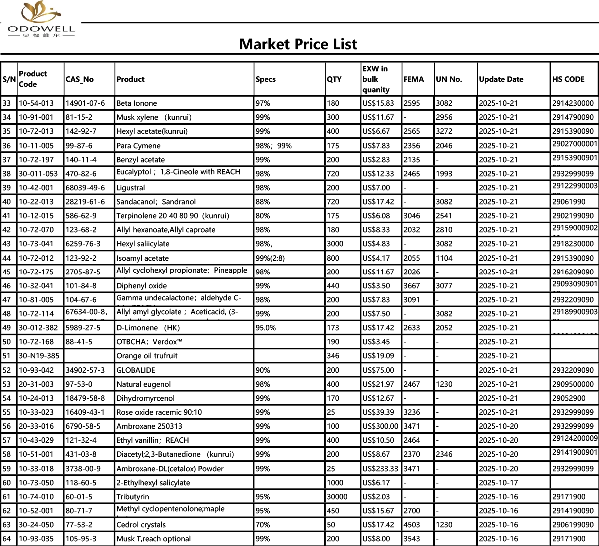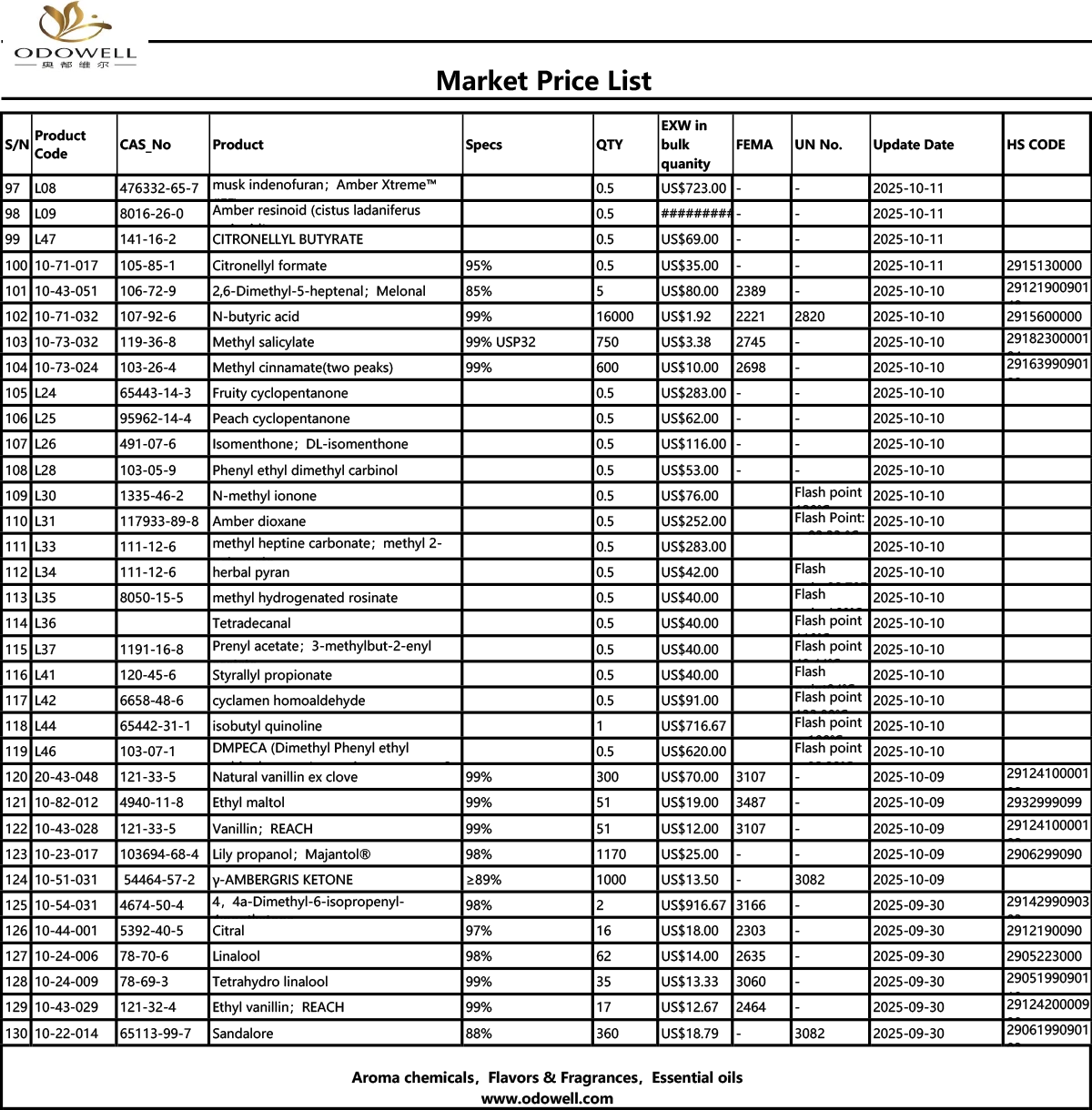 Odowell-Рыночный прайс-2025.9.30-2025.10.24